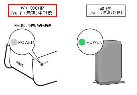 WX1800HPのPOWERランプ点滅後、1分以内に弊社製Wi-Fi(無線)親機の「WPSボタン」を長押ししてください。