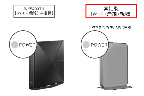 WX5400T6のPOWERランプ点滅後、1分以内に弊社製Wi-Fi(無線)親機の「WPSボタン」を長押ししてください。