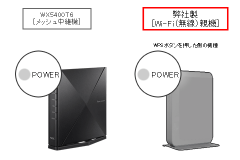 WX5400T6のPOWERランプ点滅後、1分以内に弊社製メッシュ親機の「WPSボタン」を長押ししてください。