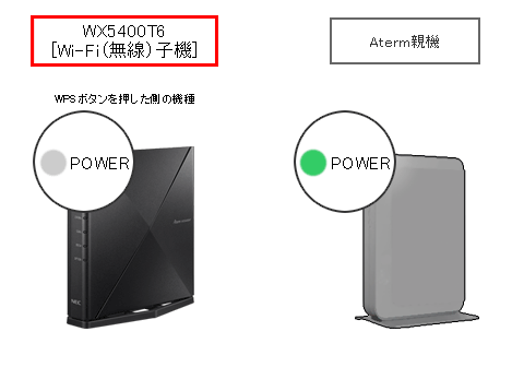 WX5400T6のPOWERランプ点滅後、1分以内にAterm親機の「WPSボタン」を長押ししてください。