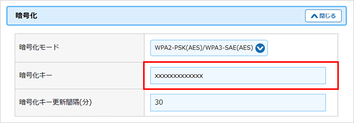 『暗号化』の「暗号化キー」から、変更後の暗号化キーの確認が行えます。