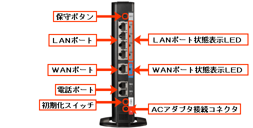 | WANポート | WAN | 回線終端装置との接続に使用します。 | |