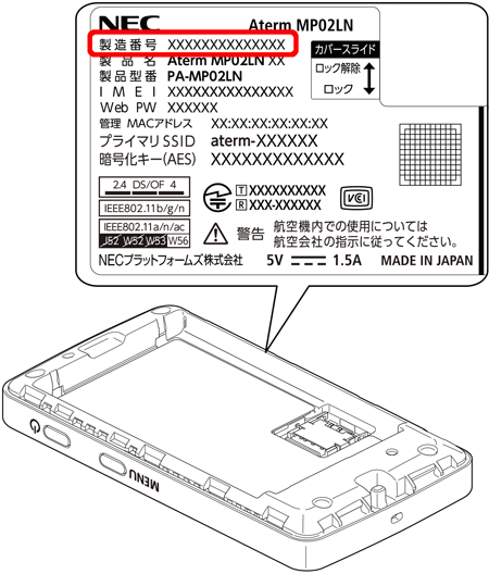 一部の機種は、本体裏側の充電池カバーと充電池パックを外した箇所にラベルが貼られています。