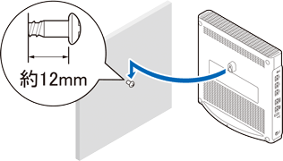 ※ 壁掛け用ネジのみの場合、接続したケーブルに引っ張られて本体が傾き、落下する恐れがあります。本体固定用ネジでの固定も忘れずに行ってください。