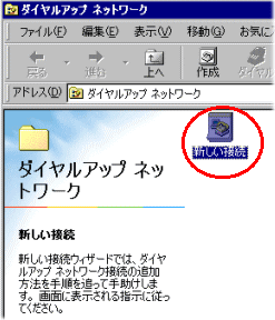 [スタート]-[プログラム]-[アクセサリ]-[通信]-[ダイヤルアップネットワーク]を