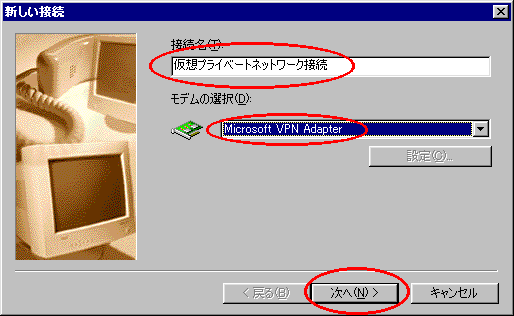 [Microsoft VPN Adapter]をクリックし、[次へ]をクリックする |