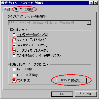 Windows(R) 98 がPPTPクライアントの場合 |