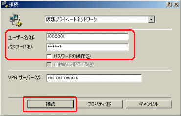 「接続名」には、あとでわかるように接続名や会社名などの適当な名前を入力し、