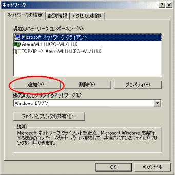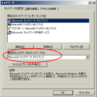 [優先的にログオンするネットワーク]で[Microsoftネットワーククライアント]を