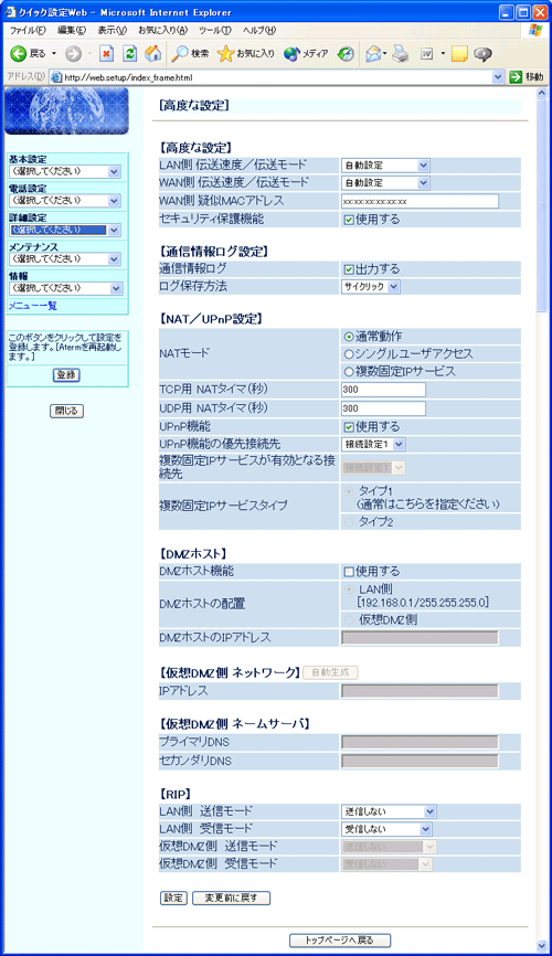 LAN側にRIP Version2対応のルータしかない場合は、 これを選択するとLAN側パソコンの負荷が減ります。