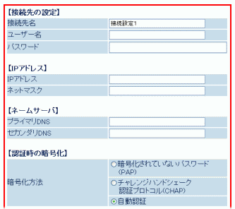 ・本商品に[接続先の設定]、[IPアドレス]、[ネームサーバ]