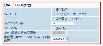 「詳細設定」-「高度な設定」-[NAT/UPnP設定]で、