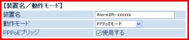 「基本設定」-「基本設定」-[装置名/動作モード]の「動作モード」で、「PPPoEモード」を選択する |