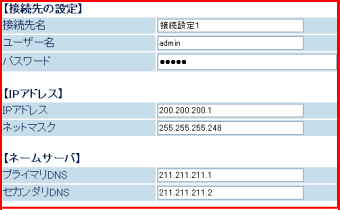 ブロードバンド接続事業者から指定されたIPアドレスを入力します。