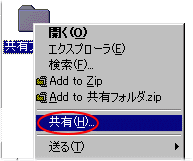 共有するフォルダを右クリックし、メニューから[共有]をクリックする