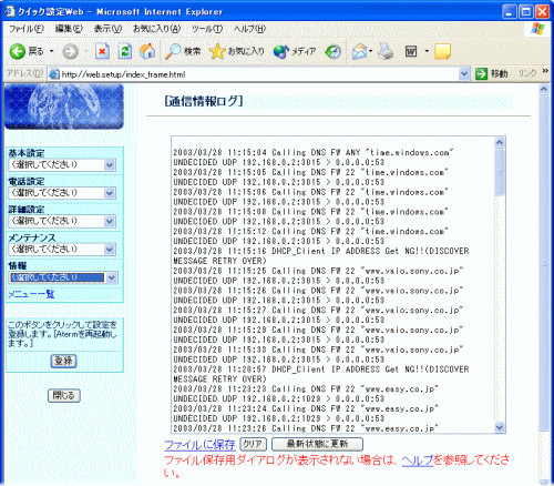なお、ログ情報表示の内容に関するお問い合わせは、
