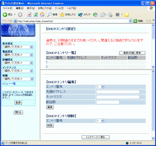 本商品では、[DHCPエントリ]のパターンを最大20個設定できます。