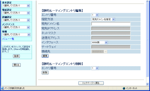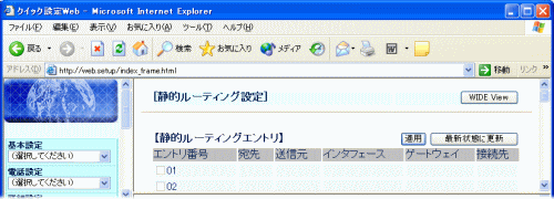 この場合は、「静的ルーティング設定」で設定した接続先で