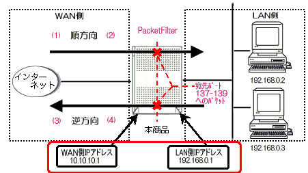 本商品から外部へのNetBIOS等による意図しない