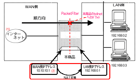 ●外部の特定の端末から本商品のtelnetポ−トへの