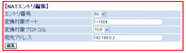 編集したNATエントリの「エントリ番号(50)」のチェックボックスを