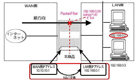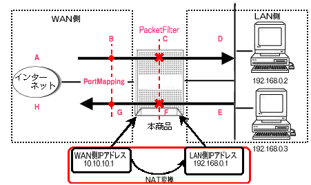 ポートマッピングとパケットフィルタを組み合わせることにより、