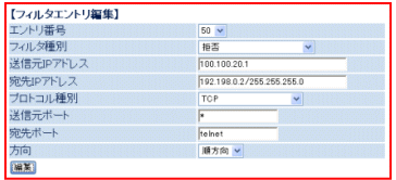 編集したフィルタエントリの「エントリ番号(50)」のWAN側チェックボックスを