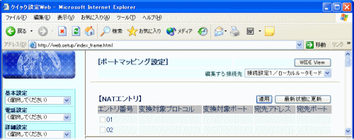 本商品では、[NATエントリ]のパターンを最大50個設定できます。 |