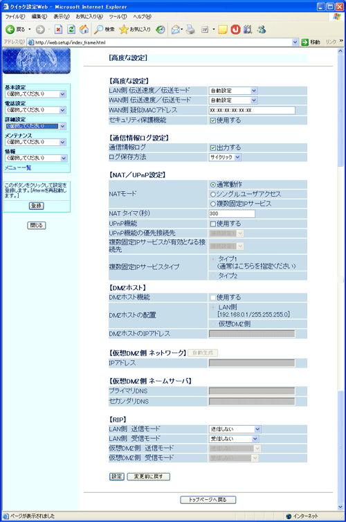 上記で「DMZホストのIPアドレス」を設定している場合には、