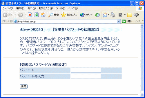 【基本設定】 基本設定本商品の動作モードを設定します。 自動接続先の選択設定 自動接続先を選択します。 ADSLモデム設定 本商品に搭載のADSLモデムを設定します。 WAN側自動接続設定(ADSL) 接続に必要な設定をします。 【詳細設定】 LAN側設定 【メンテナンス】 管理者パスワードの変更管理者パスワードを変更します。 時刻設定 日付と時刻を、本商品に設定します。 日付時刻は、通信情報ログなどに記録されます。 NTPサーバを指定して、指定したサーバに時刻の問い合わせを行い、 その時刻を本商品に設定します。 設定値の保存&復元 本商品の現在の設定内容をファイルに保存および復元できます。 設定値の初期化 本商品の設定内容を工場出荷時(初期化)に戻します。 ファームウェア更新 本商品のファームウェアを更新(バージョンアップ)します。 PINGテスト PINGテストを行います。 ループバックテスト ループバックテストを行います。 【情報】 現在の状態本商品の装置情報や状態が表示されます。 通信情報ログ 通信情報ログ(接続動作履歴)を表示します。 UPnPの状態 UPnPが利用可能な端末情報を表示します。 ADSLモデムの状態 本商品に搭載のADSLモデムの状態を確認することができます。 | ||||||||||||||||