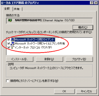 | ■Microsoftネットワーク用ファイルとプリンタ共有のインストール(サーバパソコンのみ) |