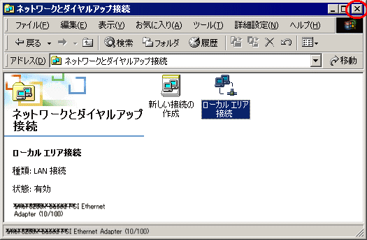 [ネットワークとダイヤルアップ接続]画面がを終了します。 |