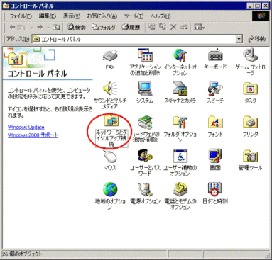 [ネットワークとダイヤルアップ接続]アイコンをダブルクリックする |