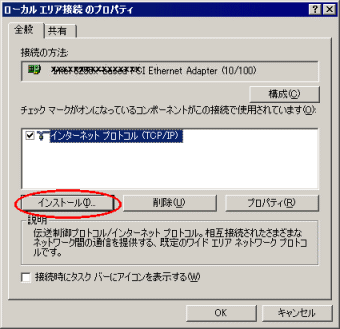 | ■インターネットプロトコル(TCP/IP) のインストール |