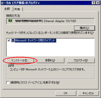 | ■Microsoft ネットワーク用クライアントのインストール |