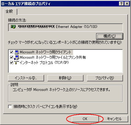 | ネットワークコンポーネントの確認 |