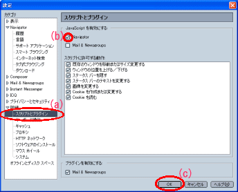 [JavaScriptを有効にする]の[Navigator]にチェックを入れる (<図1>の(b))