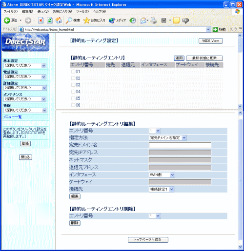 | [静的ルーティングエントリ編集] |