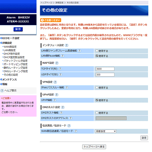 LAN側ジャンボフレーム透過機能 (初期値:使用しない) |