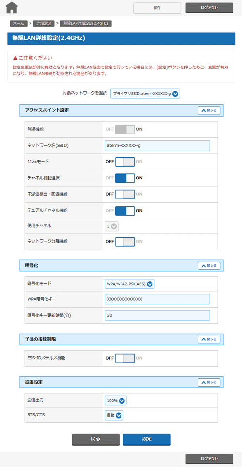 ■無線LAN詳細設定(2.4GHz)