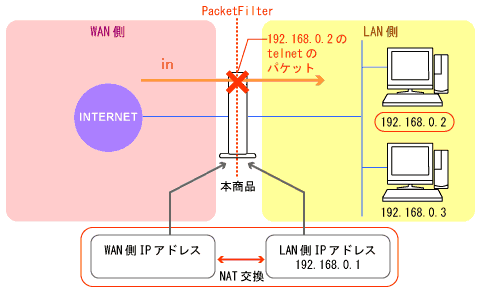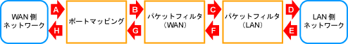 ポートマッピングとパケットフィルタを組み合わせた設定の場合には、下記のようにパケットが処理されます。