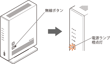 もう一度本商品(親機)の無線ボタンを長押しし、電源ランプが橙点灯状態になったら放す |