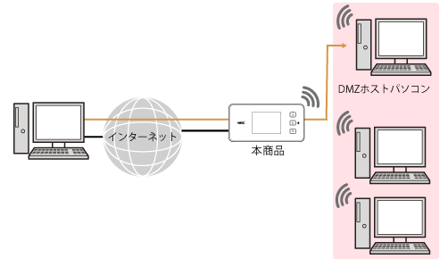 ※ DMZホストを設定していないLAN側ホストには、本商品のアドバンスドNAT機能がはたらき外部からの接続は受け付けない設定になっています。