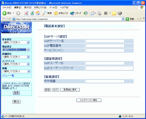 - ここに市外局番を入力しない場合は、電話機ポートに接続した電話機からIP電話をかけるときに必ず市外局番をつけてください。