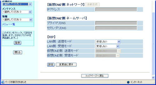 LAN側および仮想DMZ側送受信のRIP(Routing Information Protocol)のモードを