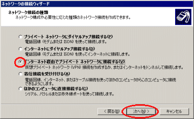 [インターネット経由でプライベートネットワークに接続する]をクリックし、