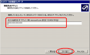 接続先のホスト名、またはIPアドレスを入力し、[次へ]をクリックする