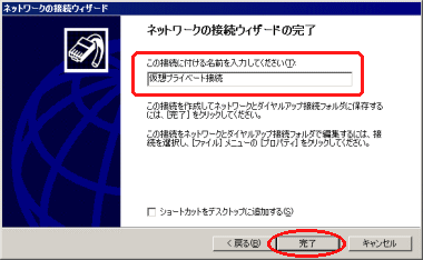 「接続名」には、あとでわかるように接続名や会社名などの適当な名前を入力し、