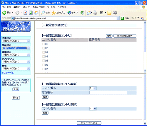 本商品では、[一般電話接続エントリ]を最大10個設定できます。