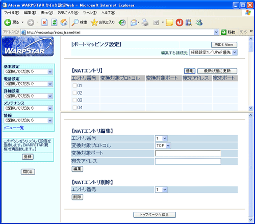 | NATエントリの編集・設定をします。 |